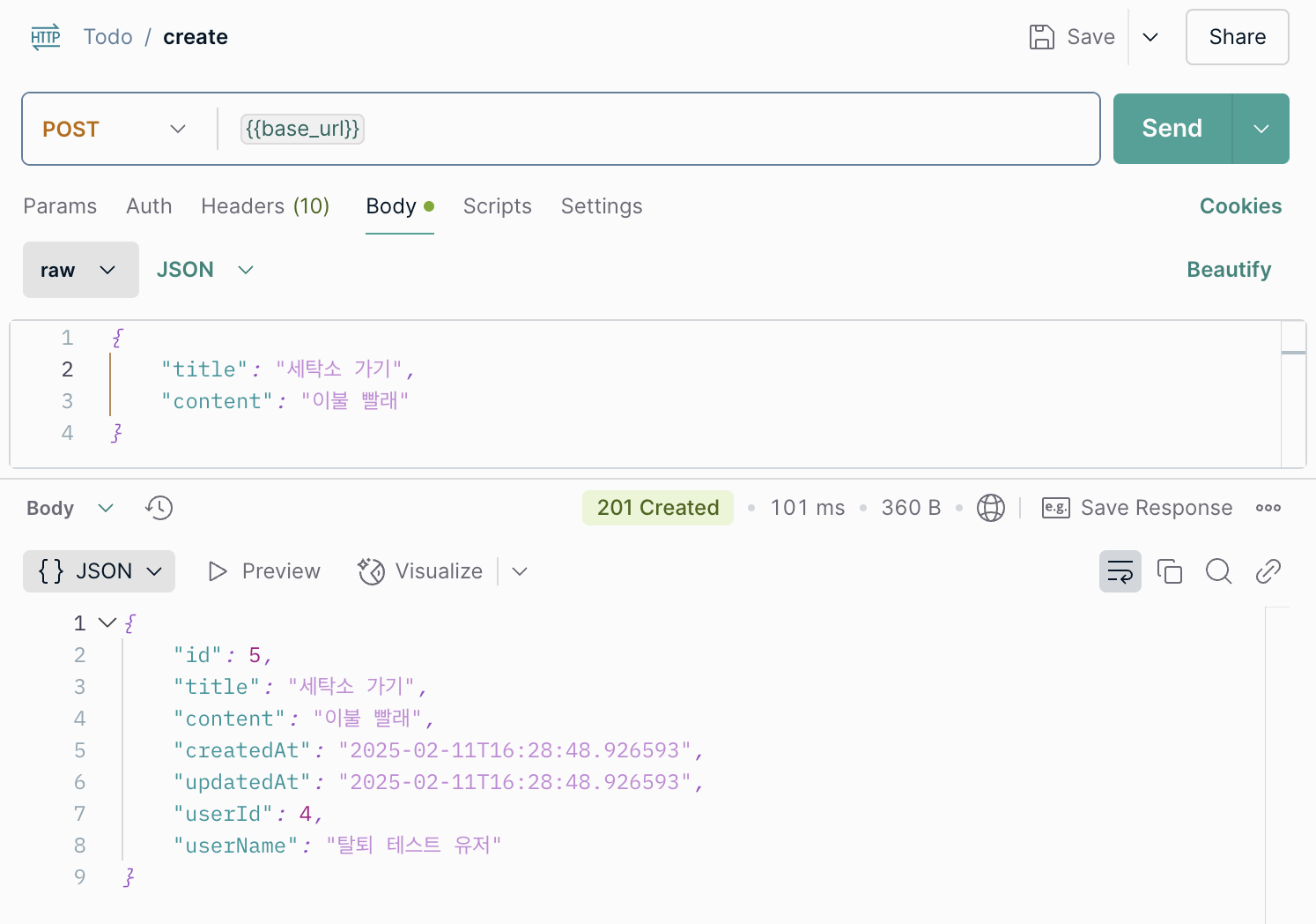 로그인 후 Todo를 생성했다.