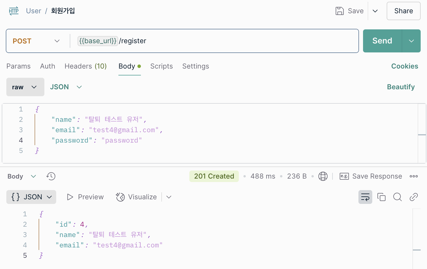 다음과 같이 탈퇴 테스트를 위한 유저를 생성하고, Todo를 하나 생성해주었다.