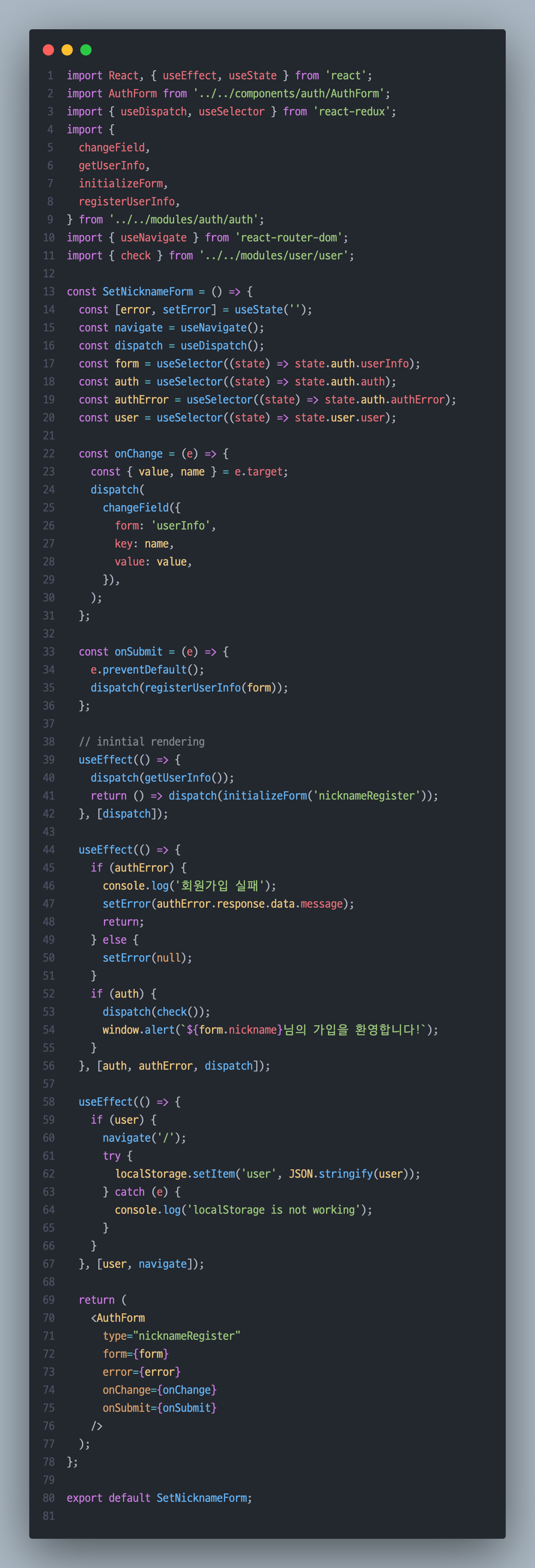 window.alert(`${form.nickname}님의 가입을 환영합니다!`);