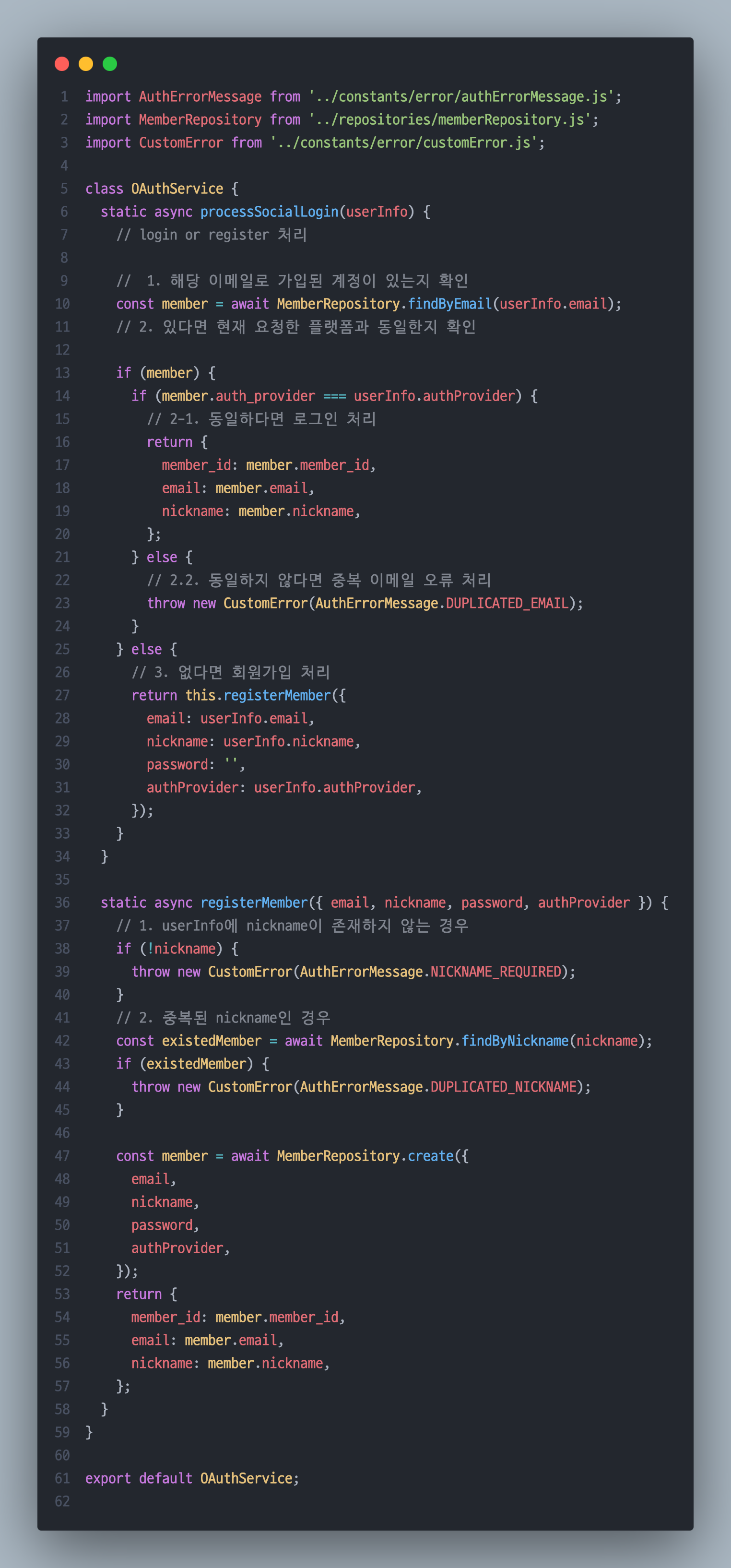 OAuthController.js 추가 코드