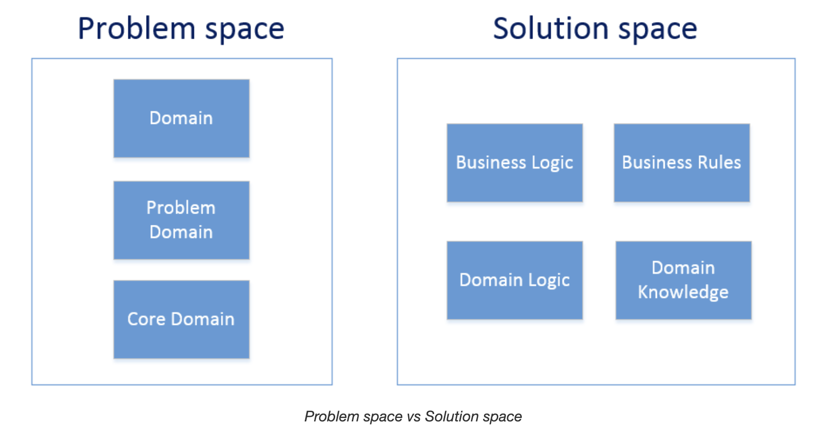 The solution space includes the terms Business Logic, Business Rules, Domain Logic, and Domain Knowledge. They represent a solution for the problem domain you have at hand