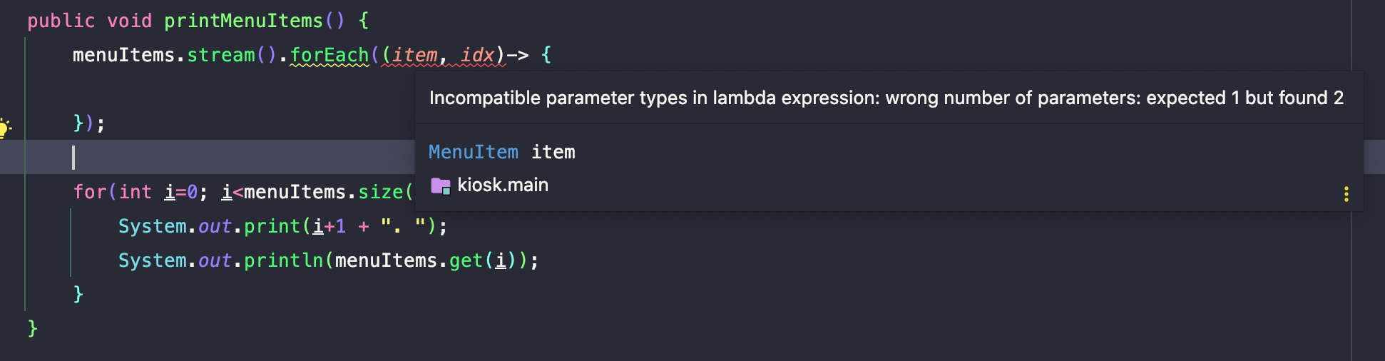menuItems.stream().forEach((item)-> {