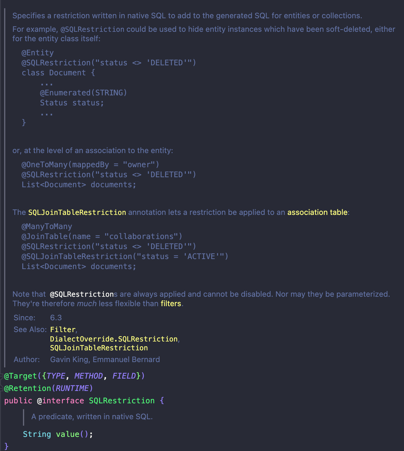 @SQLRestriction("deleted_at is NULL")