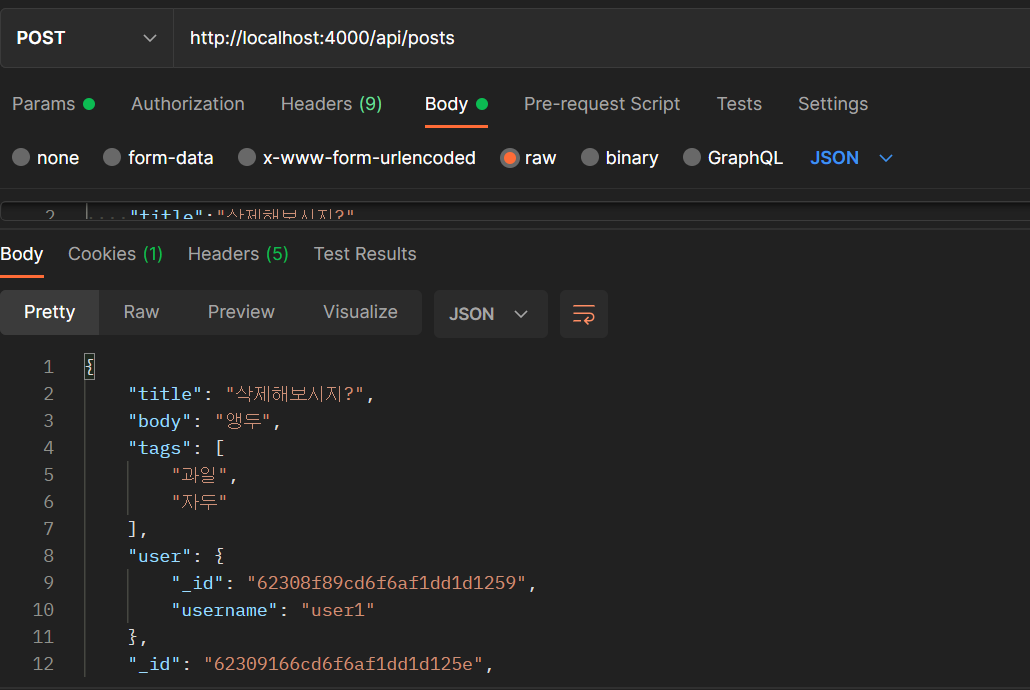 테스팅 결과, 성공적으로 포스트에 user의 정보가 담겨 저장되는 것을 확인하였다.